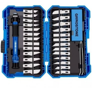 این مجموعه 29 تکه شامل 26 تیغه ساخته شده از الیاژ بادوام و با کیفیت بالا می باشد و هم چنین دارای یک سنگ اسیاب برای تیز کردن و دارای دسته الومینیومی برای استفاده اسان تر می باشد