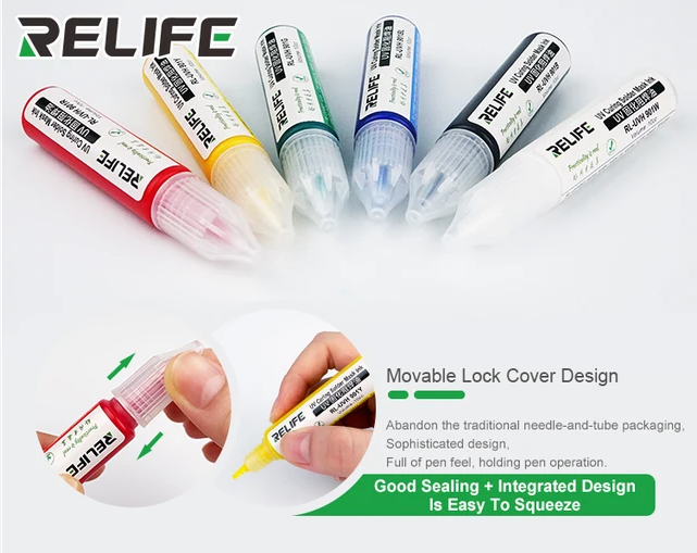 شرکت معروف ریلایف یکی از بزرگترین تولید کنندگان لوازم و ابزارآلات تعمیرات موبایل می باشد و محصولات این کمپانی از محبوبیت بالایی در بین تعمیرکاران این حوزه دارد. یکی که از لوازم مورد نیاز در حین کار با بردهای موبایل چسب UV می باشد که برای چسباندن برخی آی سی ها به کار می آید. شرکت Rilife یک محصول بسیار با کیفیت تولید کرده که رضایت بسیاری از تعمیرکاران رو جلب کرده و همچنین تنوع رنگی این چسب نیز یکی از ویژگی های این محصول فوق العاده کاربردی می باشد. این چسب یو وی با طراحی سرنگی شکل خود امکان استفاده راحتی به شما می دهد.