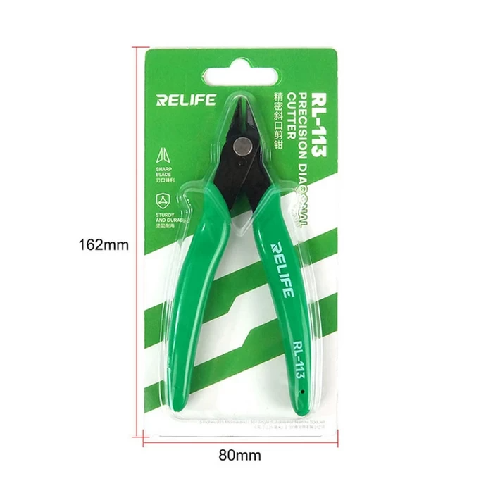 کف چین و سیم چین در تعمیرات موبایل و الکترونیک با برد موبایل تماس مستقیم دارند. سیم چین ریلایف مدل RELIFE RL-113 خمیدگی نوک کف چین به شکلی است که میتوان به راحتی یک قطعه کوچک را از کف برد الکترونیک کات کرد. ابعاد دسته و تیغه این سیم چین و کف چین استاندارد بوده و در برابر ضربه مقاوم هستند. حداکثر سایز باز شدن تیغههای این سیم چین 9 میلیمتر است و همانطور که در اسلاید عکس محصول مشاهده میفرمایید این کف چین صرفا مناسب کارهای ظریف ساخته شده است.این کفچین با روکش نرم و طراحی ساده در استفادههای طولانی مدت خستهکننده نیست و همچنین طول عمر بالایی دارد. تیغهی بسیار تیز و محکم آن از فولاد ضد زنگ ساخته شده و طول عمر بسیار بیشتری نسبت به دیگر محصولات دارد.